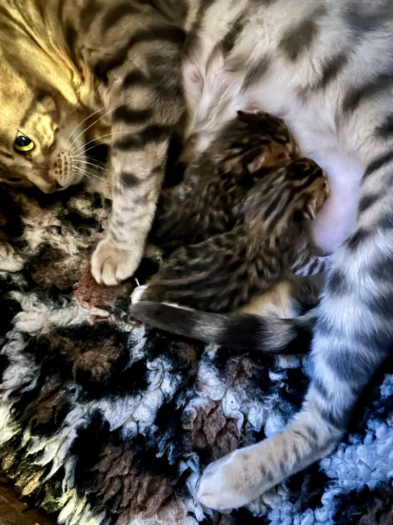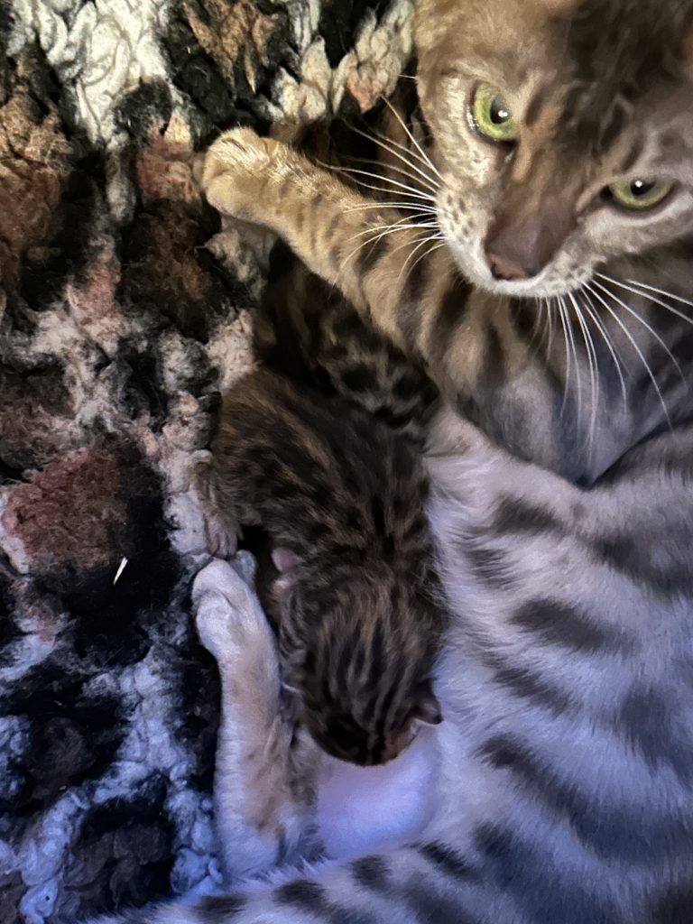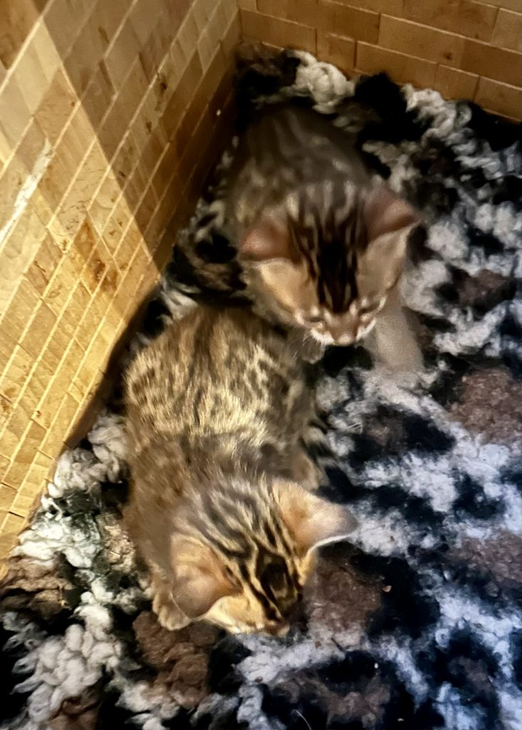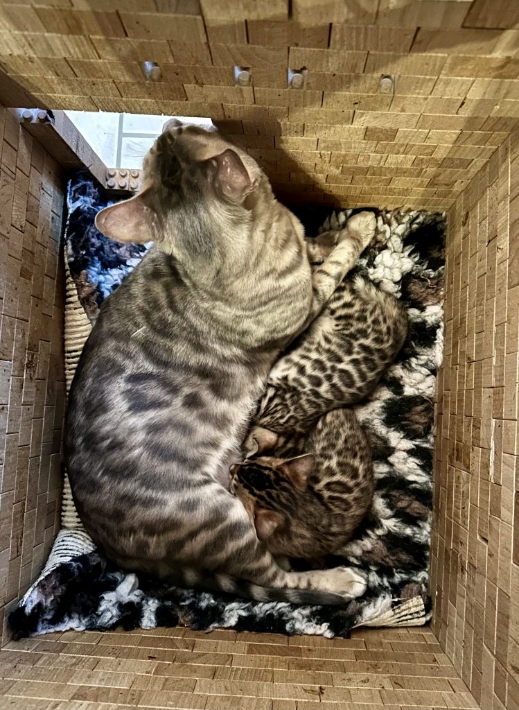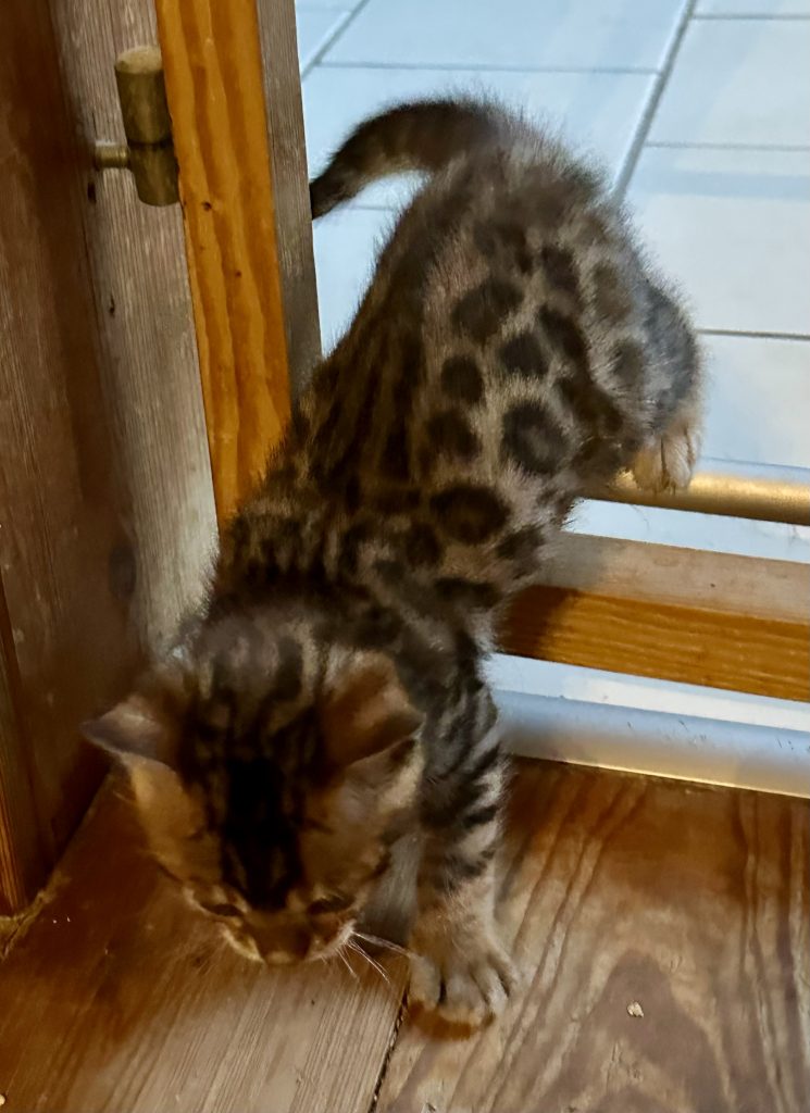 Suri ist eine Brown/Silver tabby spotted-Bengal; der Deckkater Chiko ist Brown/Black spotted tabby. Beide sind nicht nur wunderschön mit seidigem Fell, sondern haben auch einen wunderbaren Charakter. Bei den beiden war es Liebe auf den ersten Blick! Sie sind einfach zauberhaft. Beide Elterntiere hatten bereits erfolgreich Nachwuchs. Alle Kitten sind prächtig schön geworden und vor allem kerngesund!! Wir sind TICA – vereinsangehörig und selbstverständlich bekommen die Kitten Stammbäume.