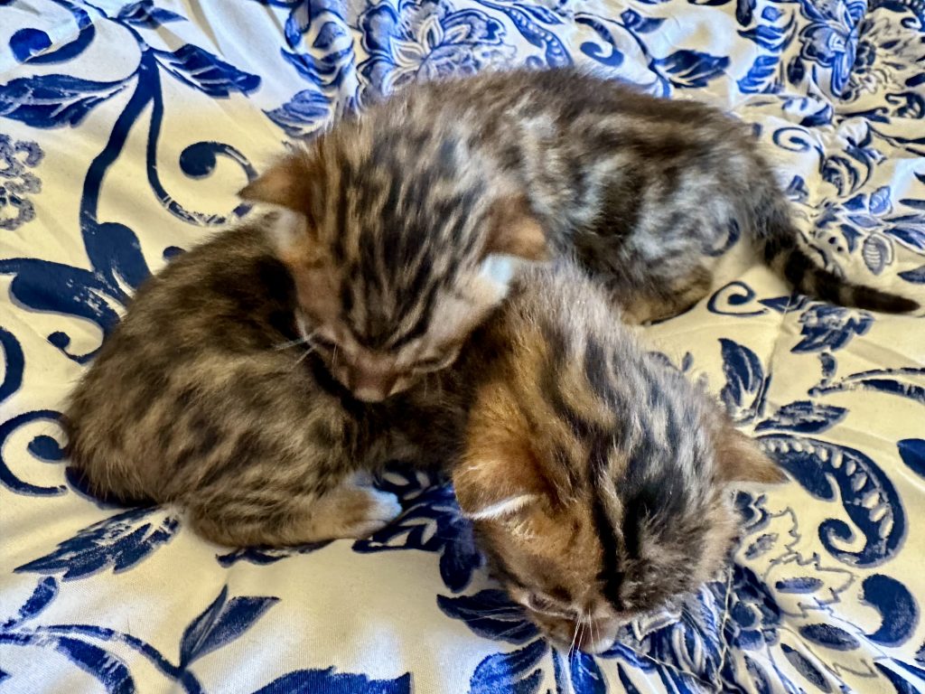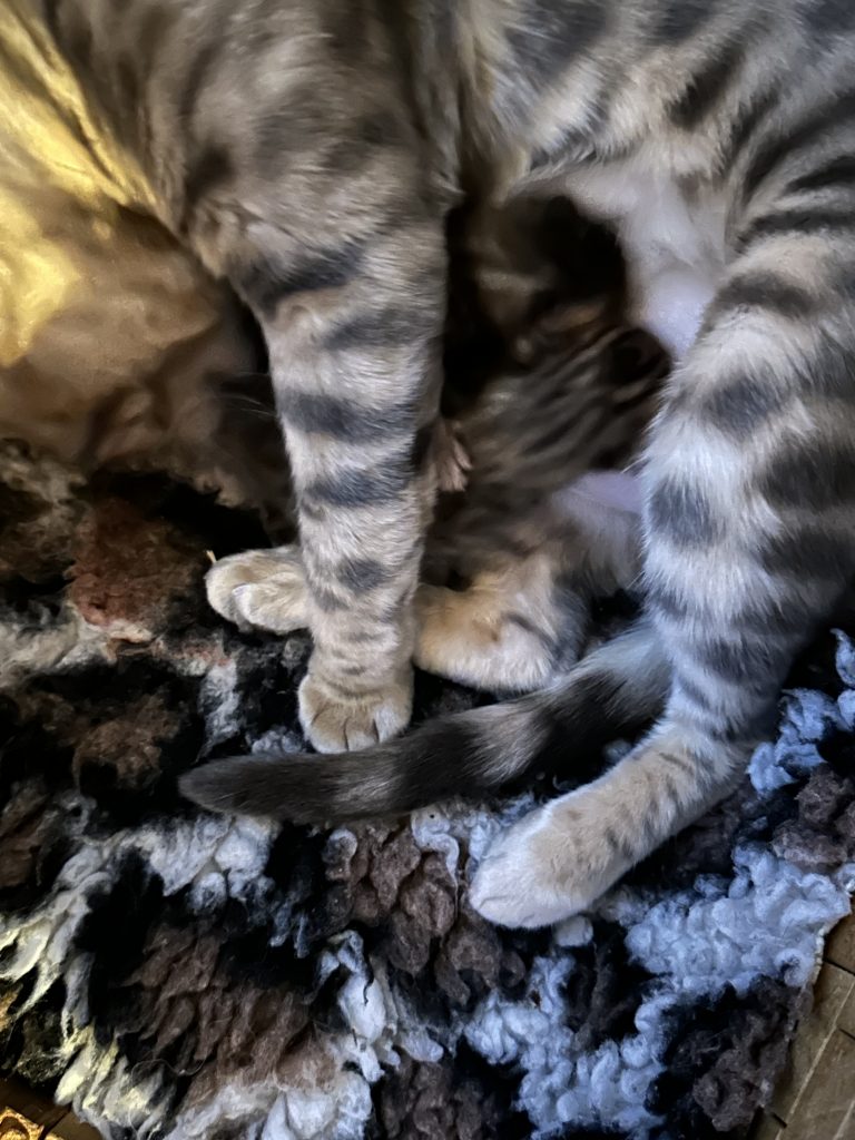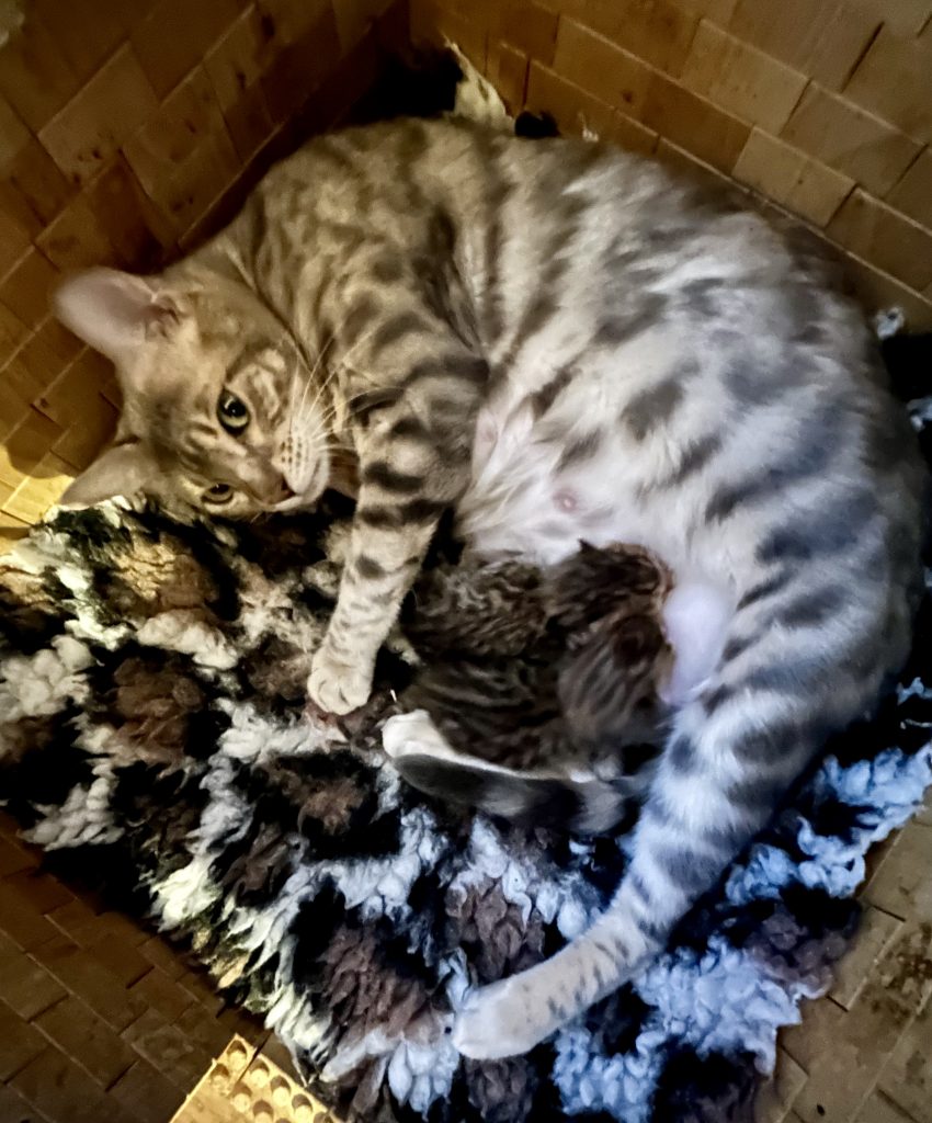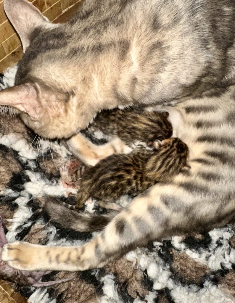 Suri ist eine Brown/Silver tabby spotted-Bengal; der Deckkater Chiko ist Brown/Black spotted tabby. Beide sind nicht nur wunderschön mit seidigem Fell, sondern haben auch einen wunderbaren Charakter. Bei den beiden war es Liebe auf den ersten Blick! Sie sind einfach zauberhaft. Beide Elterntiere hatten bereits erfolgreich Nachwuchs. Alle Kitten sind prächtig schön geworden und vor allem kerngesund!! Wir sind TICA – vereinsangehörig und selbstverständlich bekommen die Kitten Stammbäume.