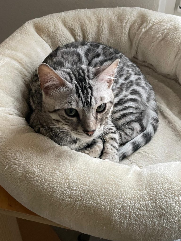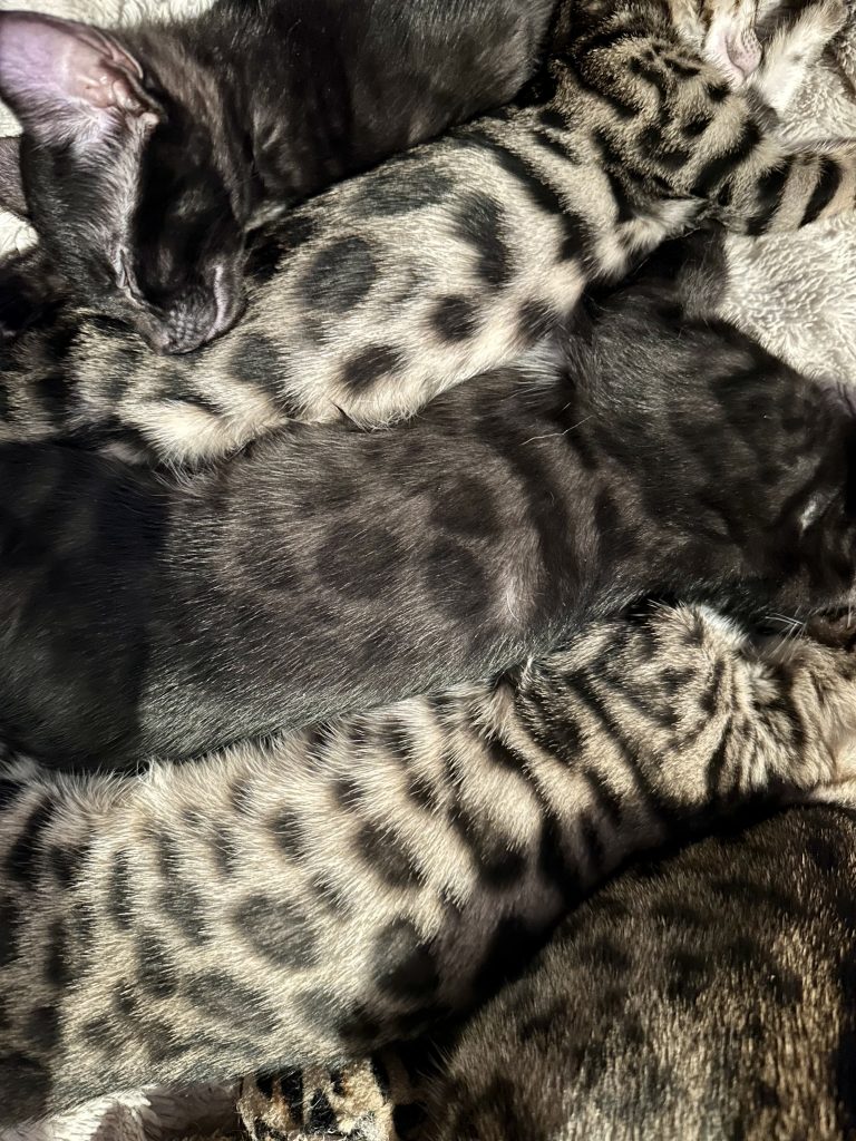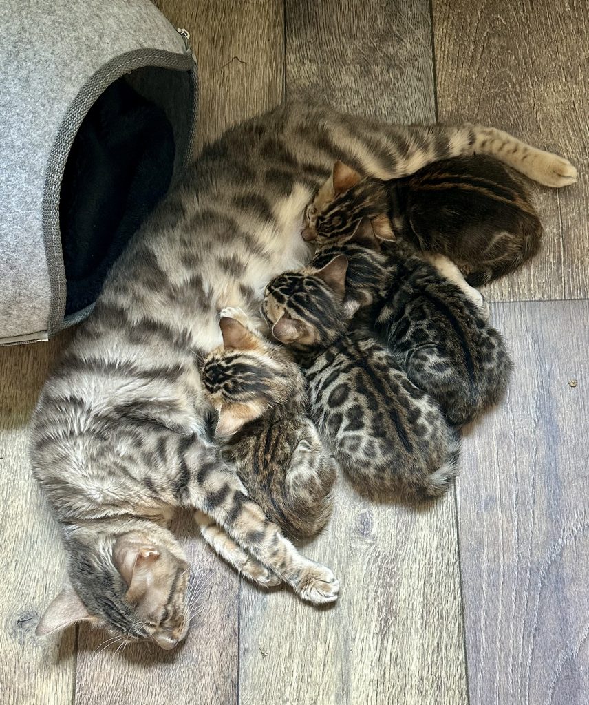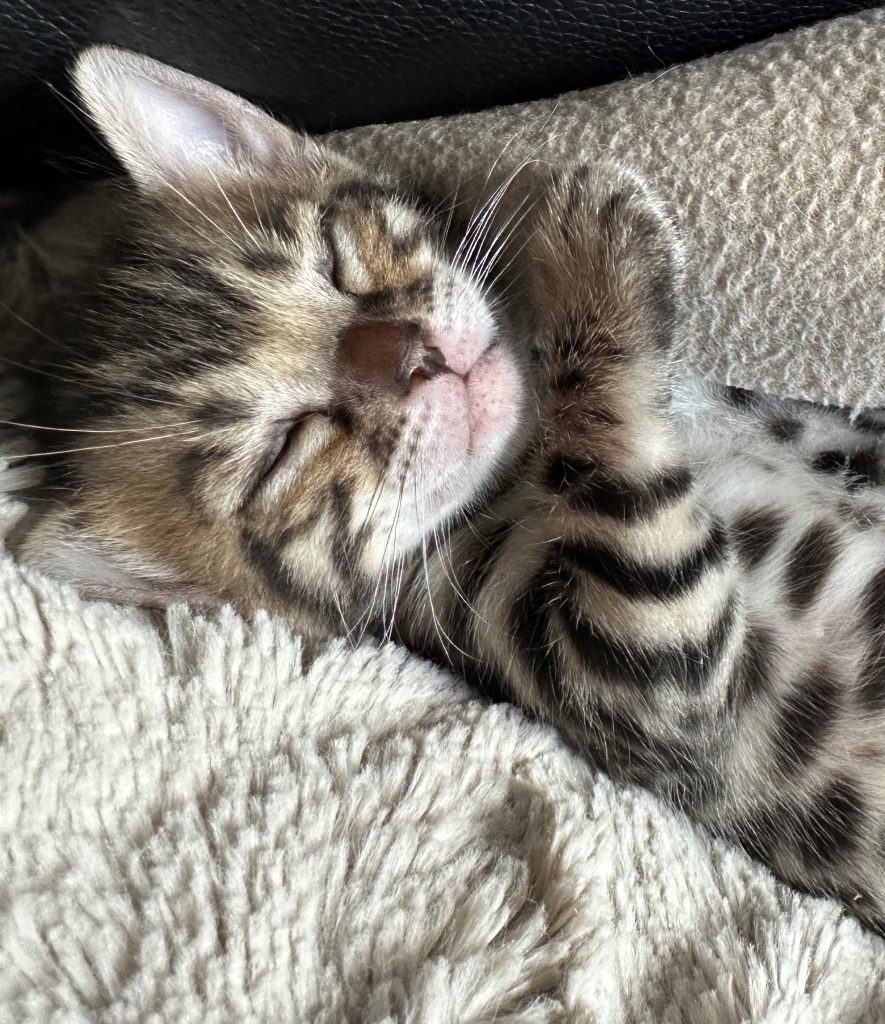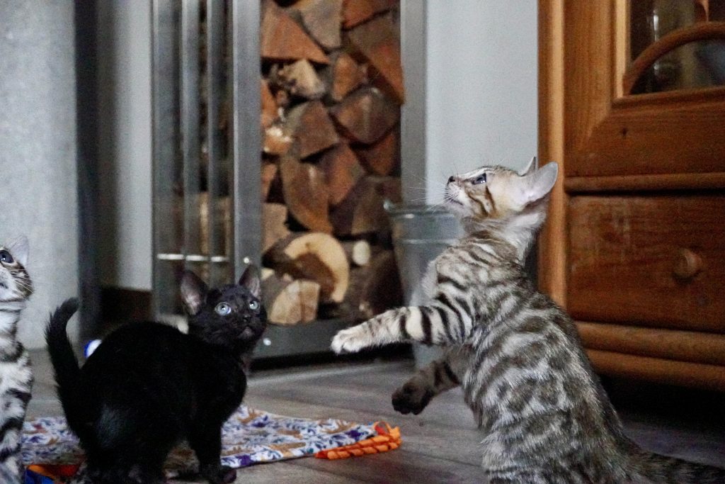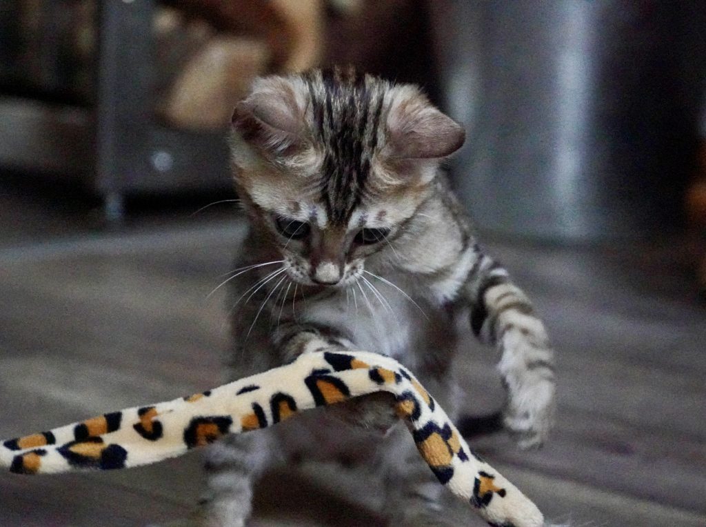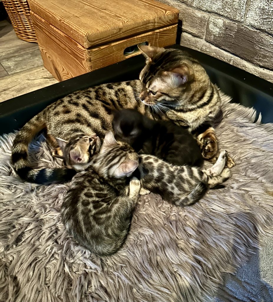Suri ist eine Brown/Silver tabby spotted-Bengal; der Deckkater Chiko ist Brown/Black spotted tabby. Beide sind nicht nur wunderschön mit seidigem Fell, sondern haben auch einen wunderbaren Charakter. Bei den beiden war es Liebe auf den ersten Blick! Sie sind einfach zauberhaft. Beide Elterntiere hatten bereits erfolgreich Nachwuchs. Alle Kitten sind prächtig schön geworden und vor allem kerngesund!! Wir sind TICA – vereinsangehörig und selbstverständlich bekommen die Kitten Stammbäume.