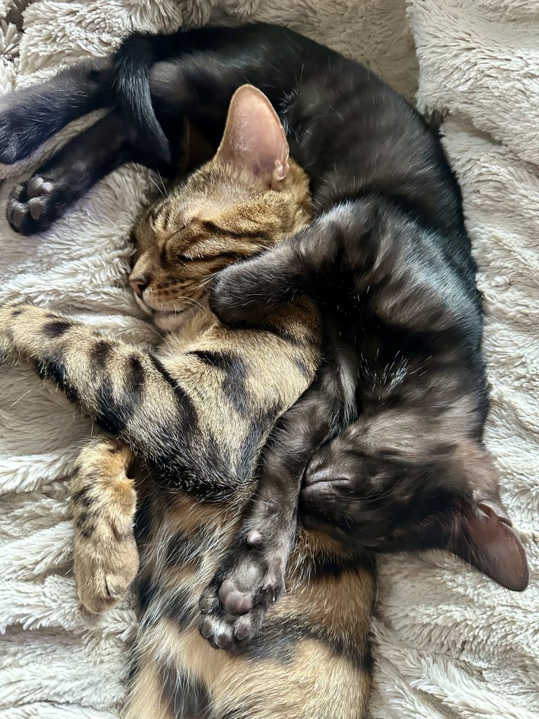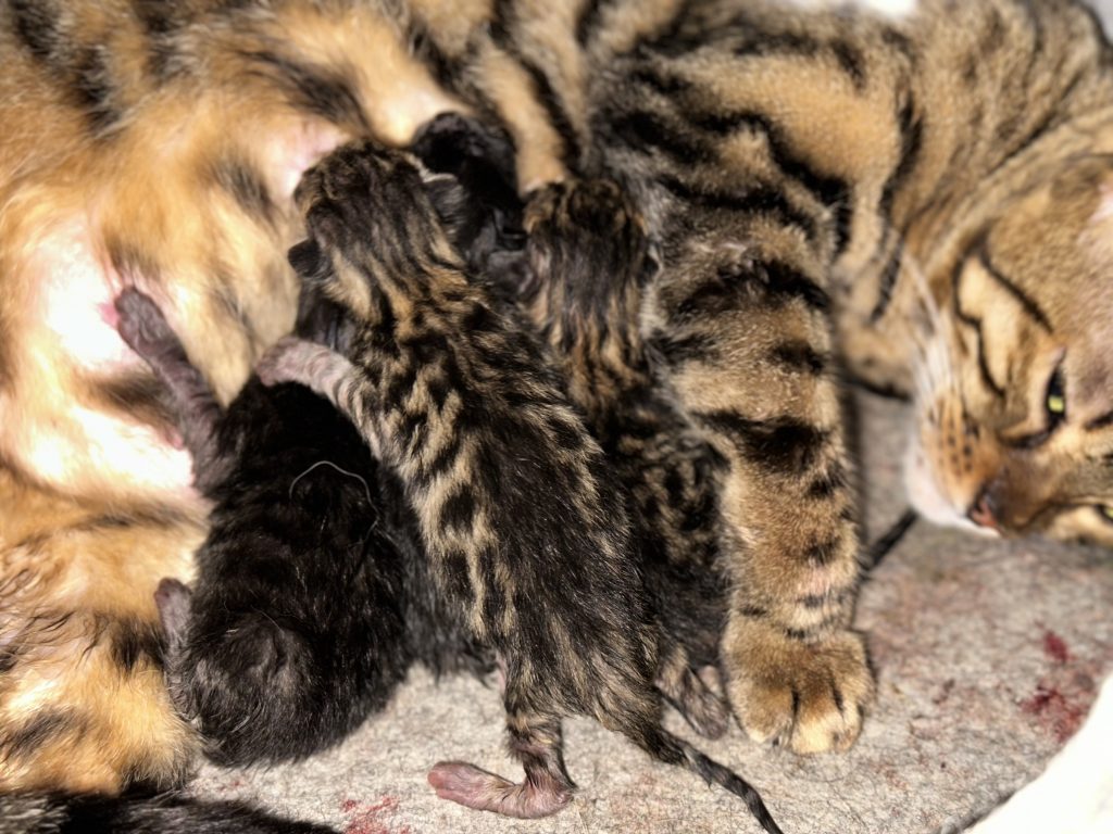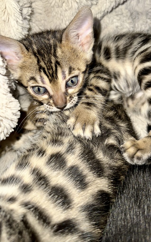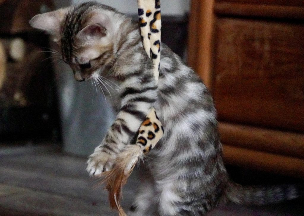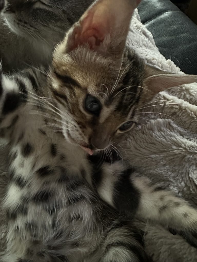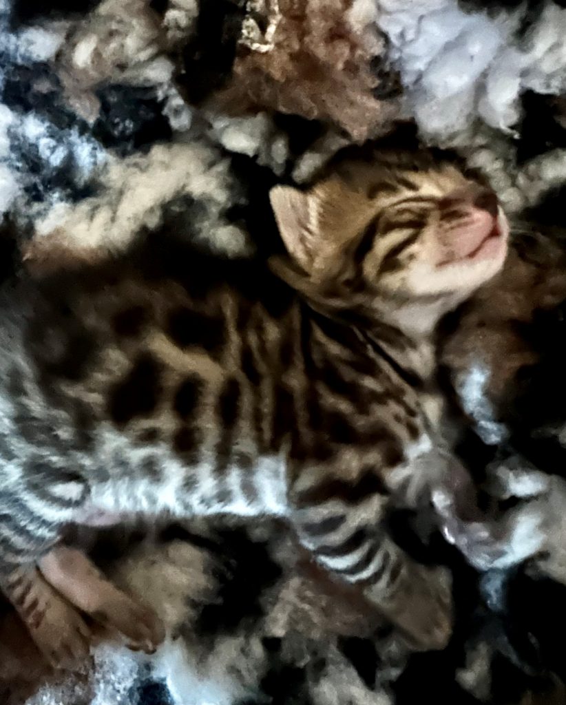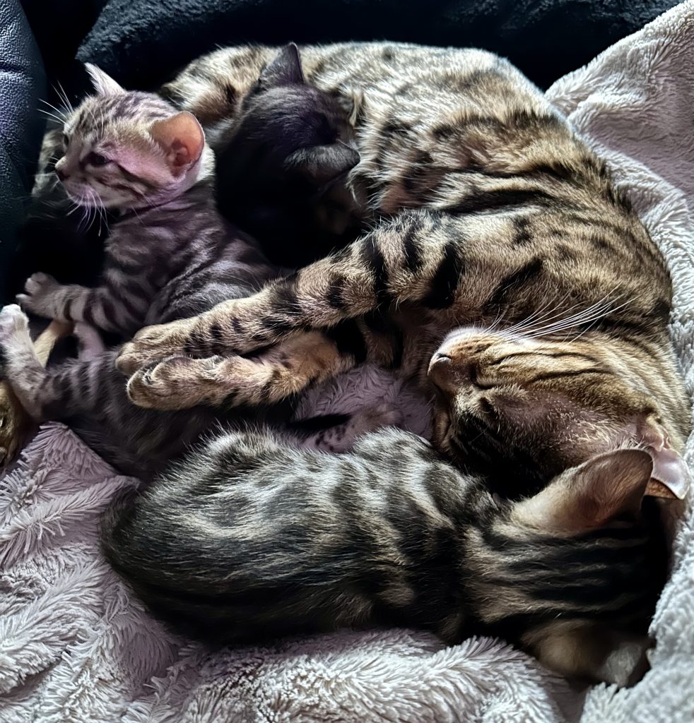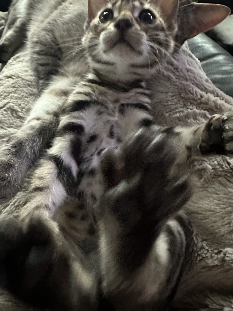Suri ist eine Brown/Silver tabby spotted-Bengal; der Deckkater Chiko ist Brown/Black spotted tabby. Beide sind nicht nur wunderschön mit seidigem Fell, sondern haben auch einen wunderbaren Charakter. Bei den beiden war es Liebe auf den ersten Blick! Sie sind einfach zauberhaft. Beide Elterntiere hatten bereits erfolgreich Nachwuchs. Alle Kitten sind prächtig schön geworden und vor allem kerngesund!! Wir sind TICA – vereinsangehörig und selbstverständlich bekommen die Kitten Stammbäume.