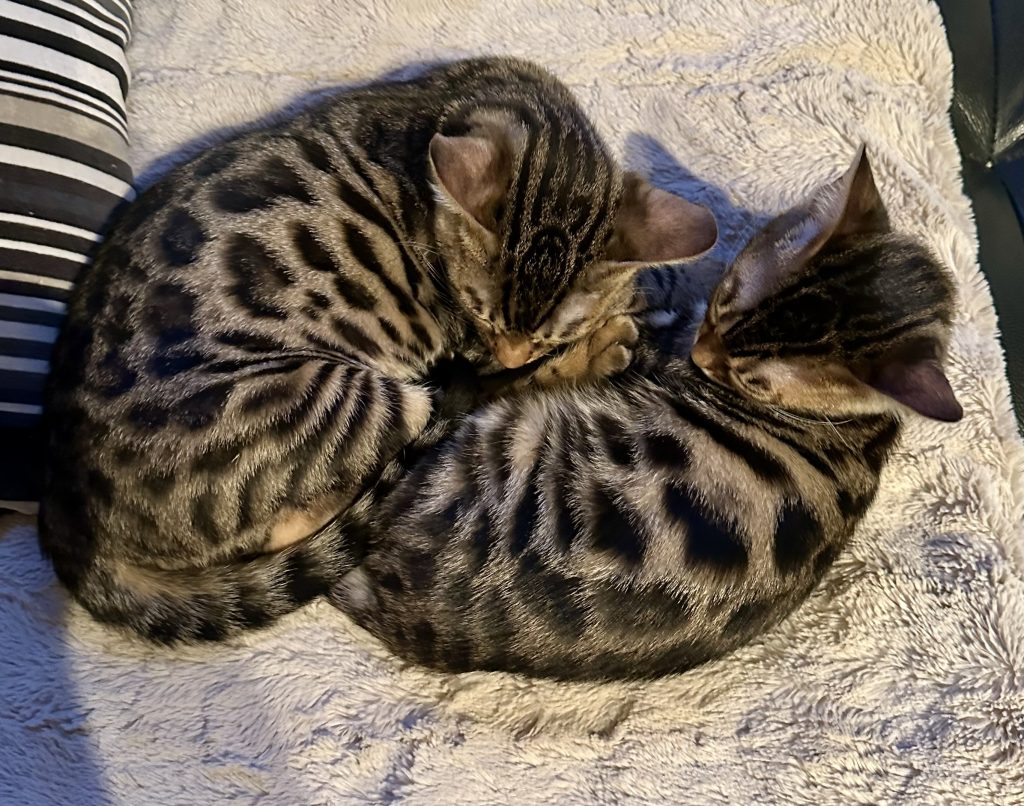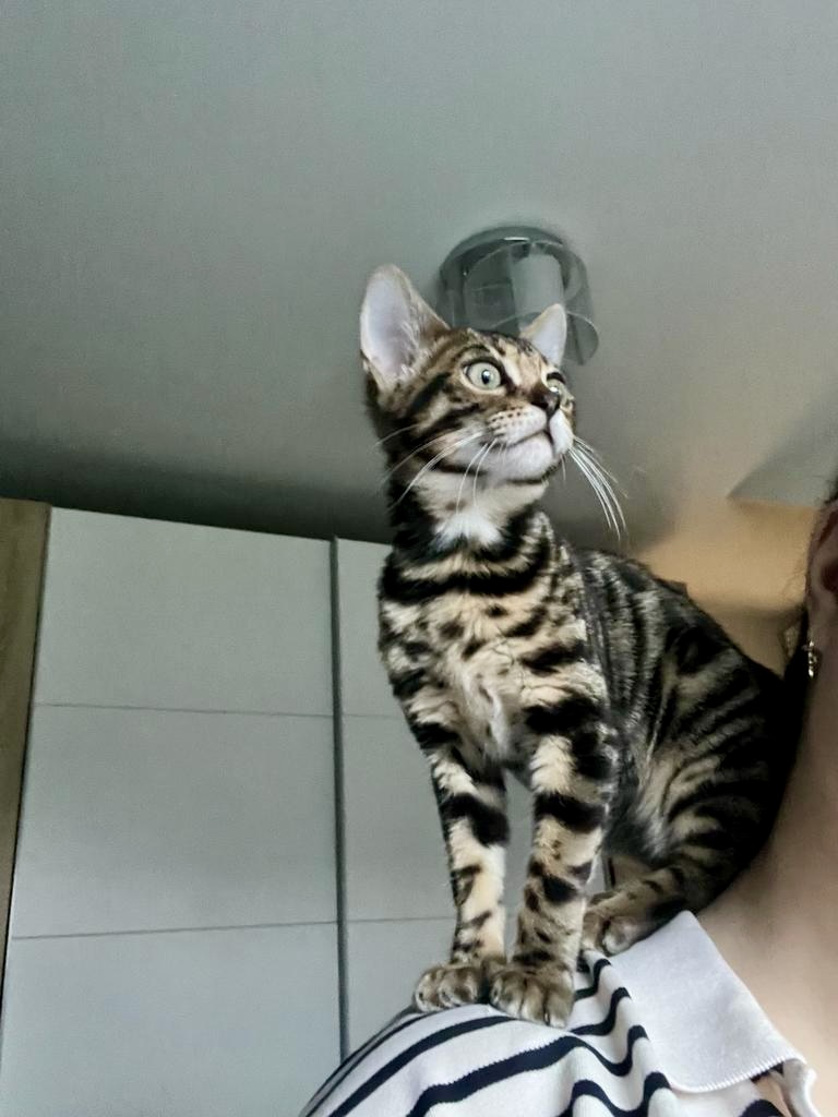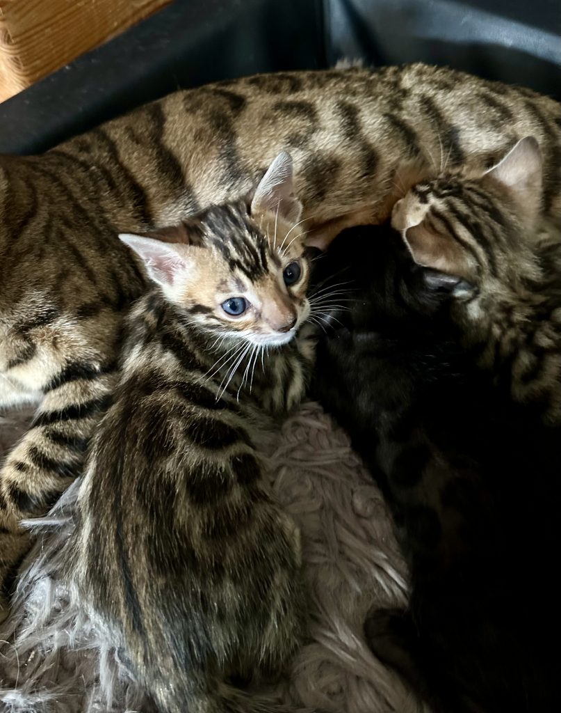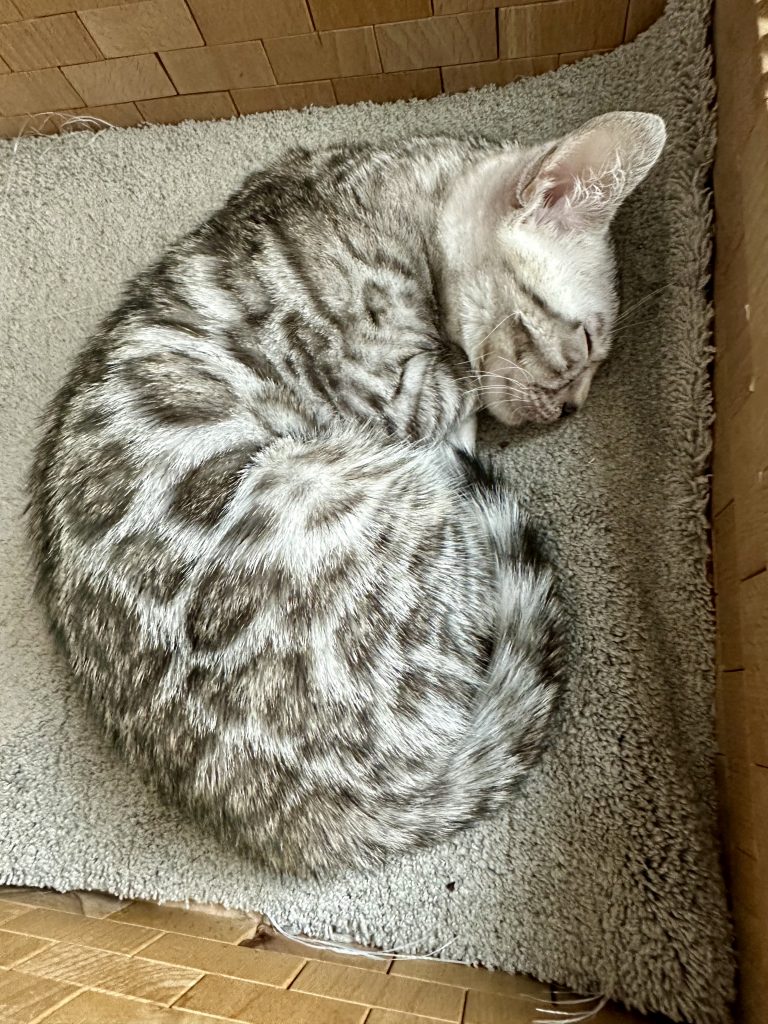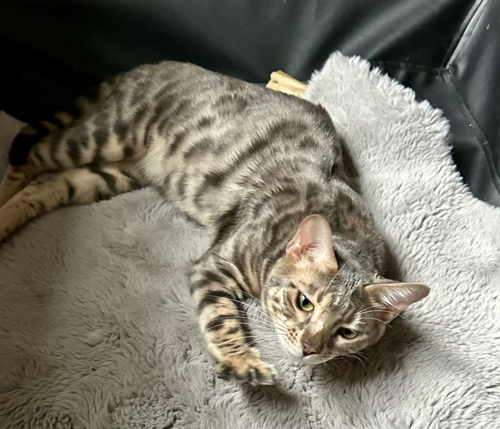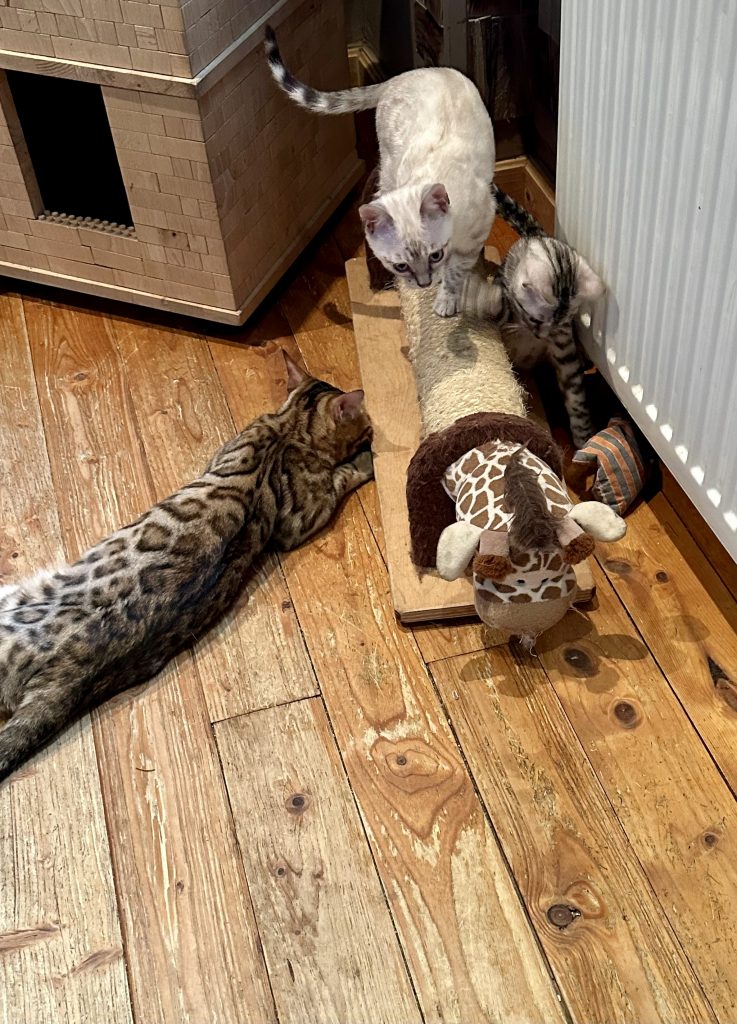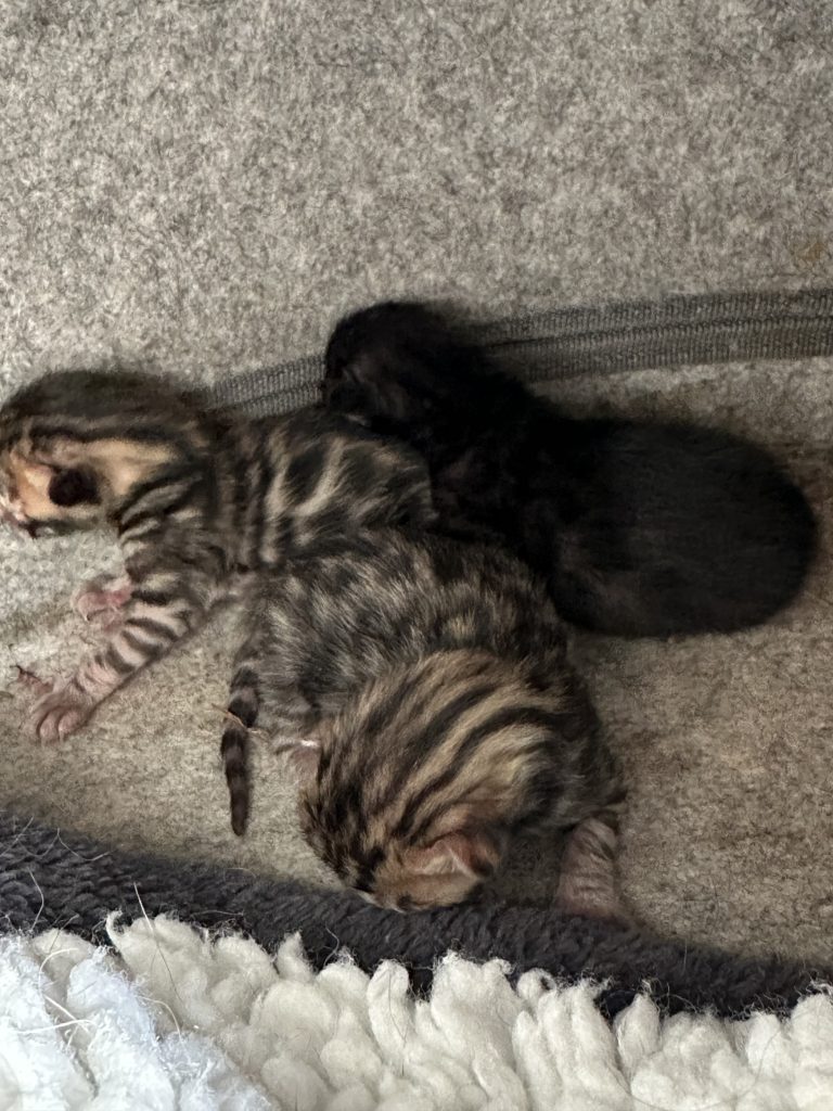 Suri ist eine Brown/Silver tabby spotted-Bengal; der Deckkater Chiko ist Brown/Black spotted tabby. Beide sind nicht nur wunderschön mit seidigem Fell, sondern haben auch einen wunderbaren Charakter. Bei den beiden war es Liebe auf den ersten Blick! Sie sind einfach zauberhaft. Beide Elterntiere hatten bereits erfolgreich Nachwuchs. Alle Kitten sind prächtig schön geworden und vor allem kerngesund!! Wir sind TICA – vereinsangehörig und selbstverständlich bekommen die Kitten Stammbäume.