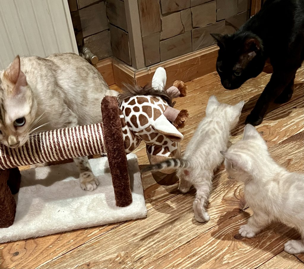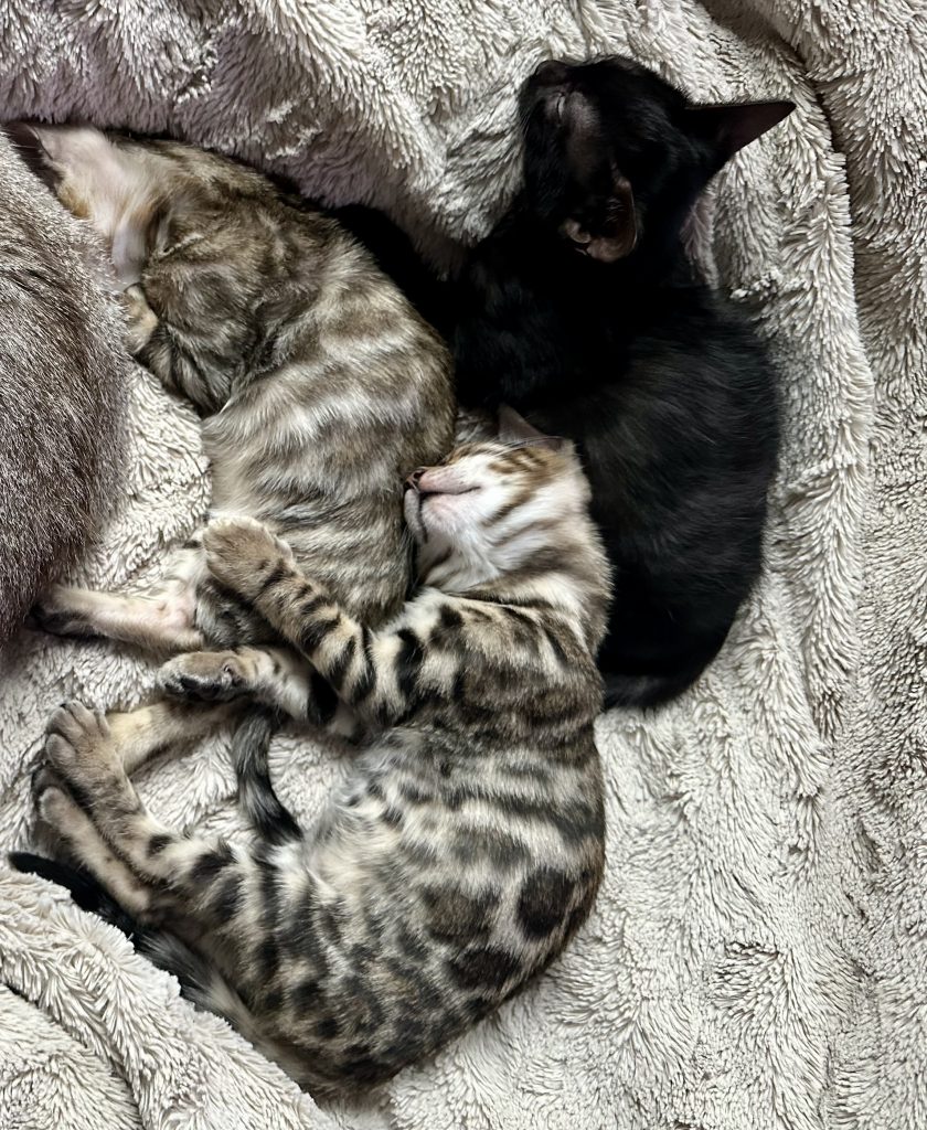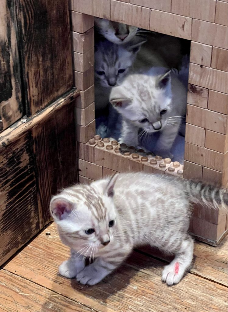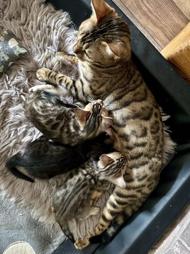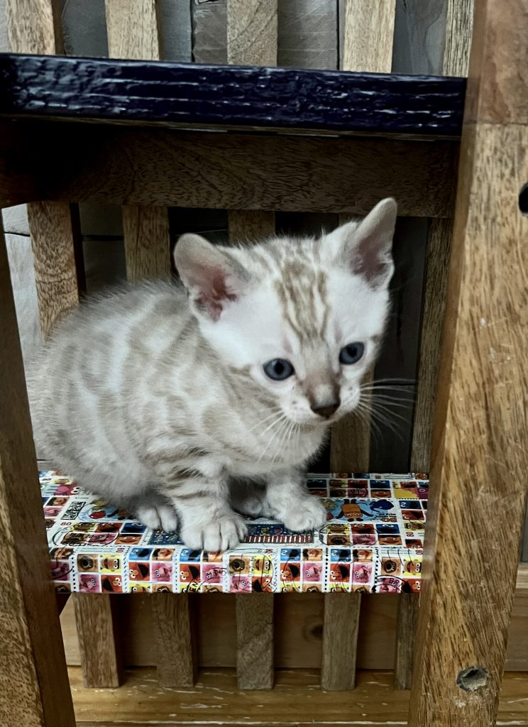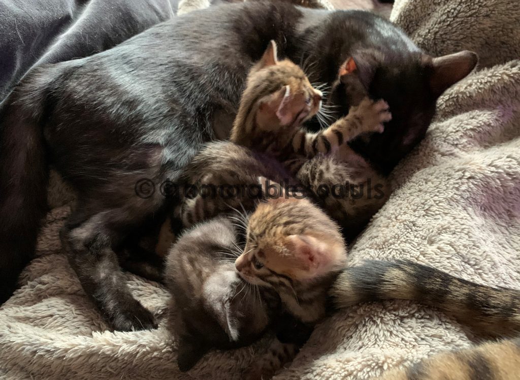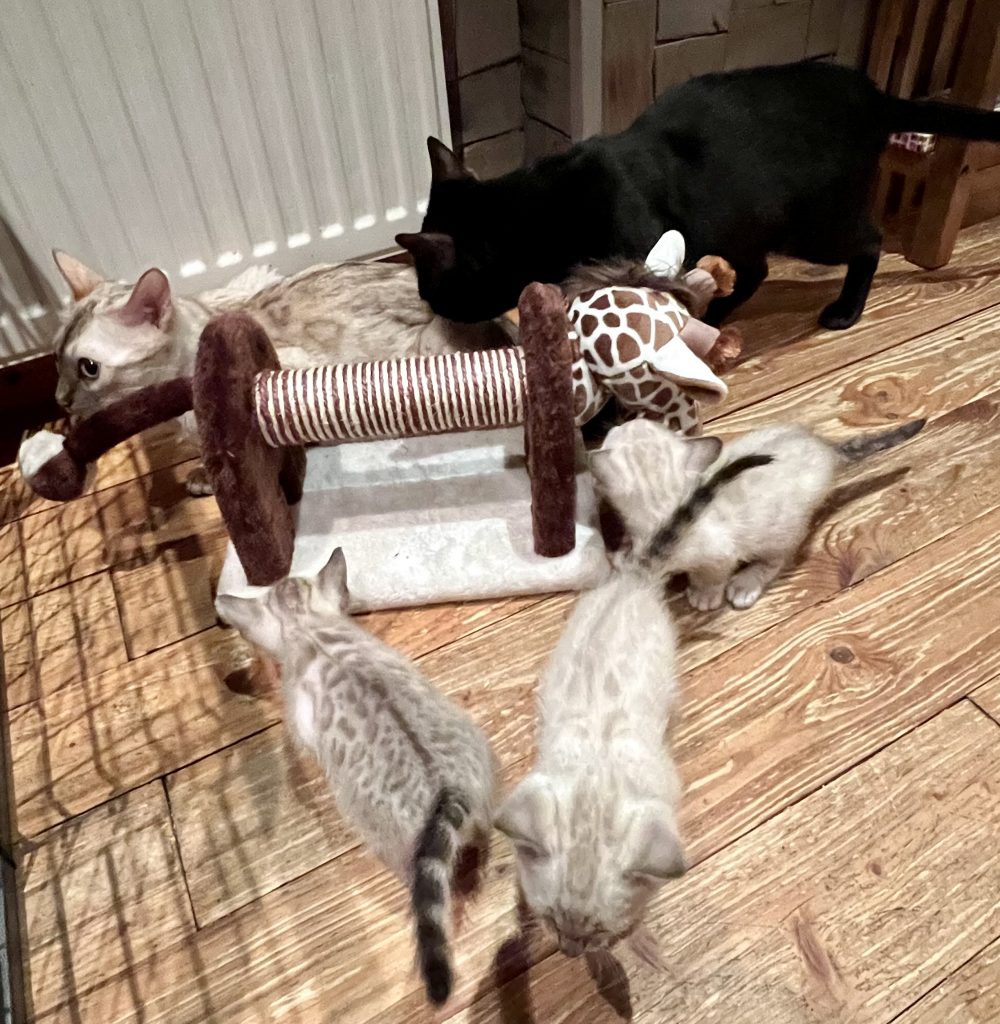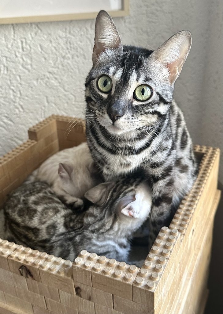 Suri ist eine Brown/Silver tabby spotted-Bengal; der Deckkater Chiko ist Brown/Black spotted tabby. Beide sind nicht nur wunderschön mit seidigem Fell, sondern haben auch einen wunderbaren Charakter. Bei den beiden war es Liebe auf den ersten Blick! Sie sind einfach zauberhaft. Beide Elterntiere hatten bereits erfolgreich Nachwuchs. Alle Kitten sind prächtig schön geworden und vor allem kerngesund!! Wir sind TICA – vereinsangehörig und selbstverständlich bekommen die Kitten Stammbäume.
