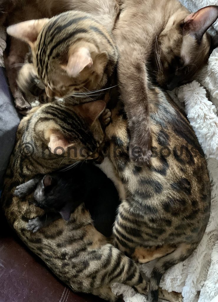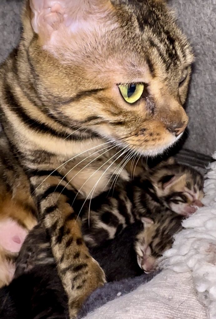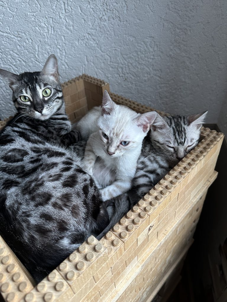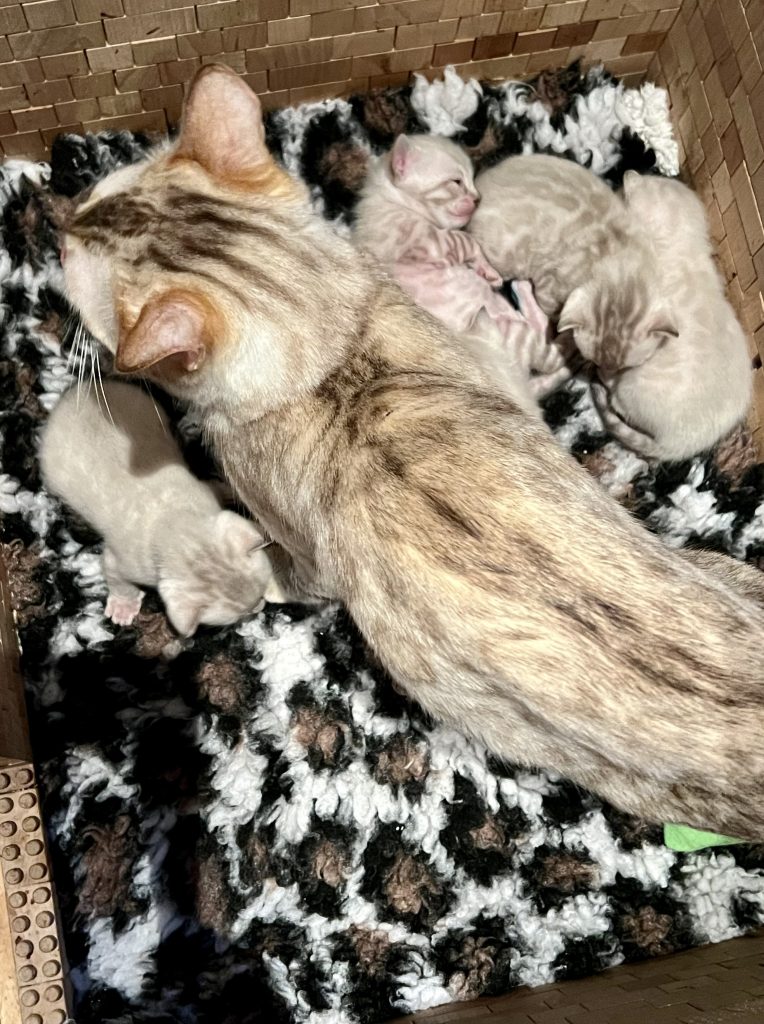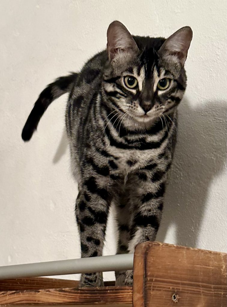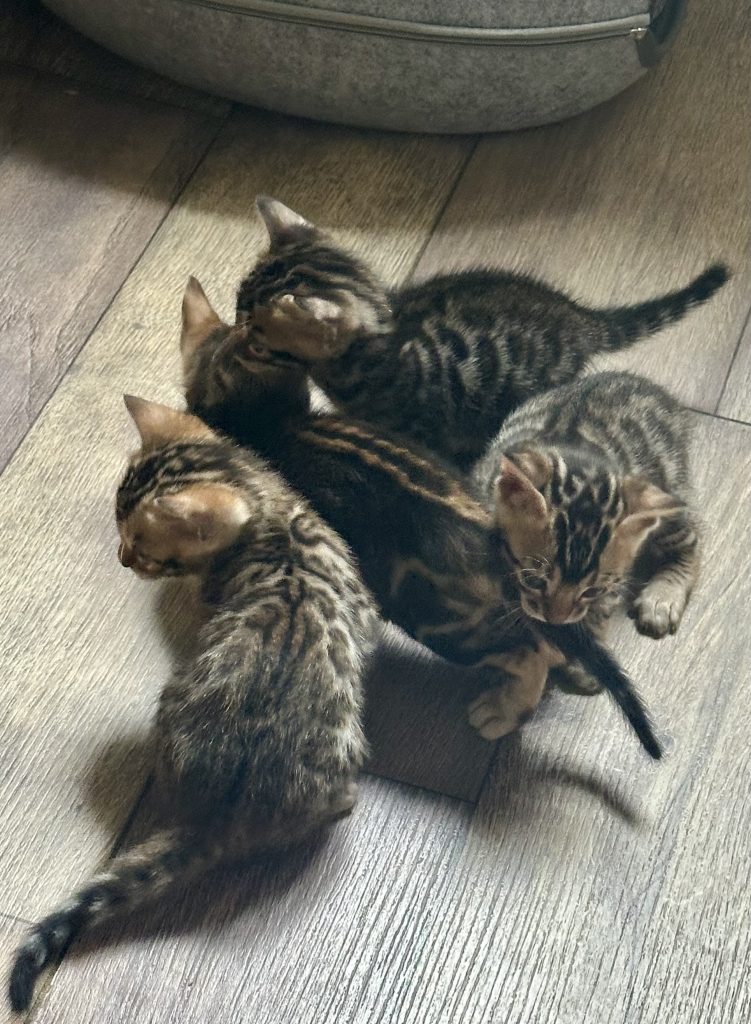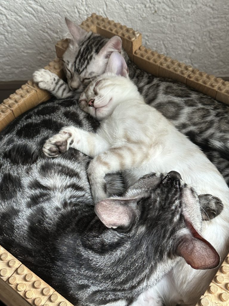 Suri ist eine Brown/Silver tabby spotted-Bengal; der Deckkater Chiko ist Brown/Black spotted tabby. Beide sind nicht nur wunderschön mit seidigem Fell, sondern haben auch einen wunderbaren Charakter. Bei den beiden war es Liebe auf den ersten Blick! Sie sind einfach zauberhaft. Beide Elterntiere hatten bereits erfolgreich Nachwuchs. Alle Kitten sind prächtig schön geworden und vor allem kerngesund!! Wir sind TICA – vereinsangehörig und selbstverständlich bekommen die Kitten Stammbäume.