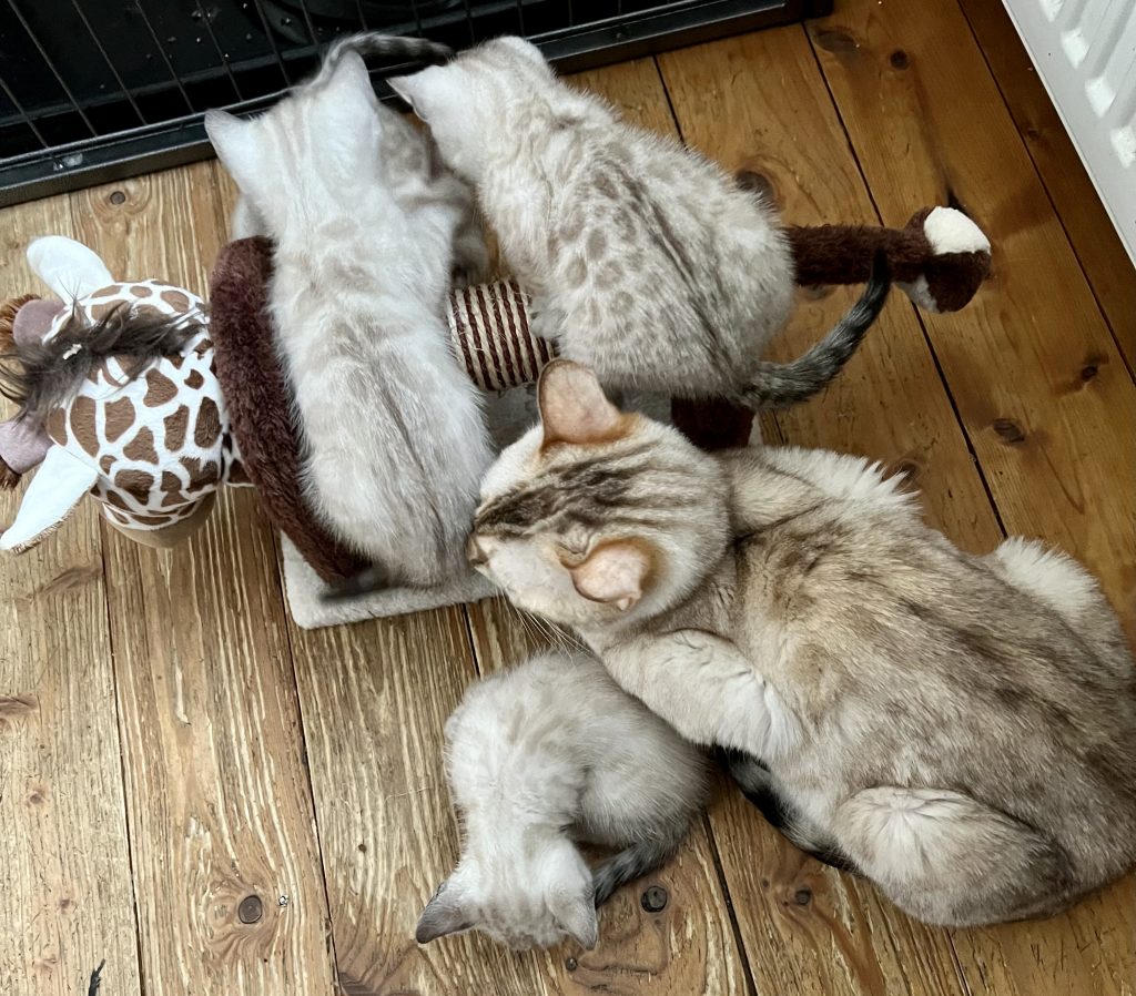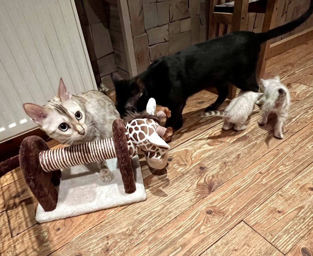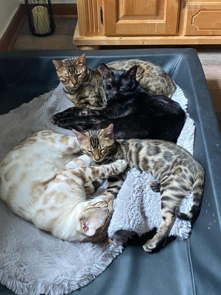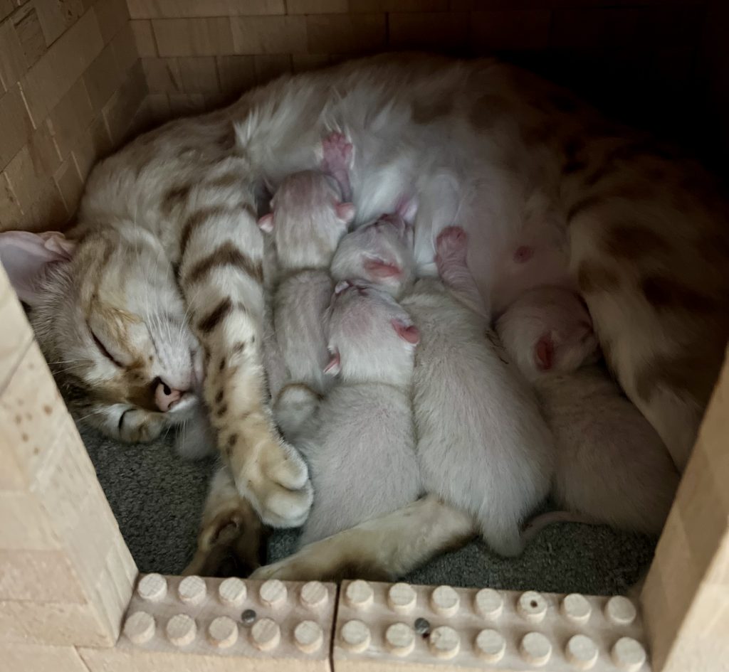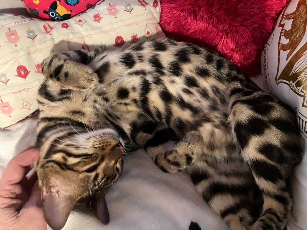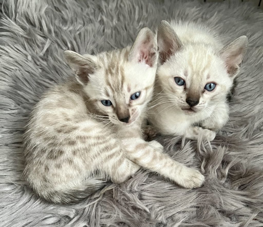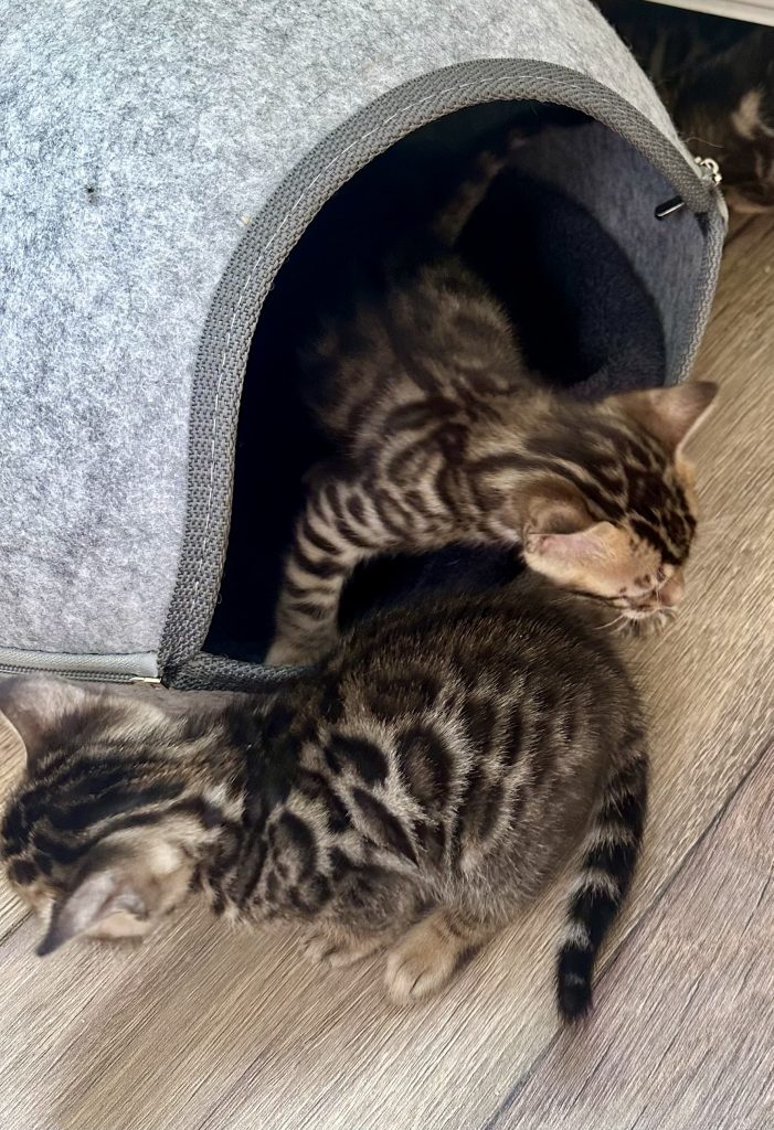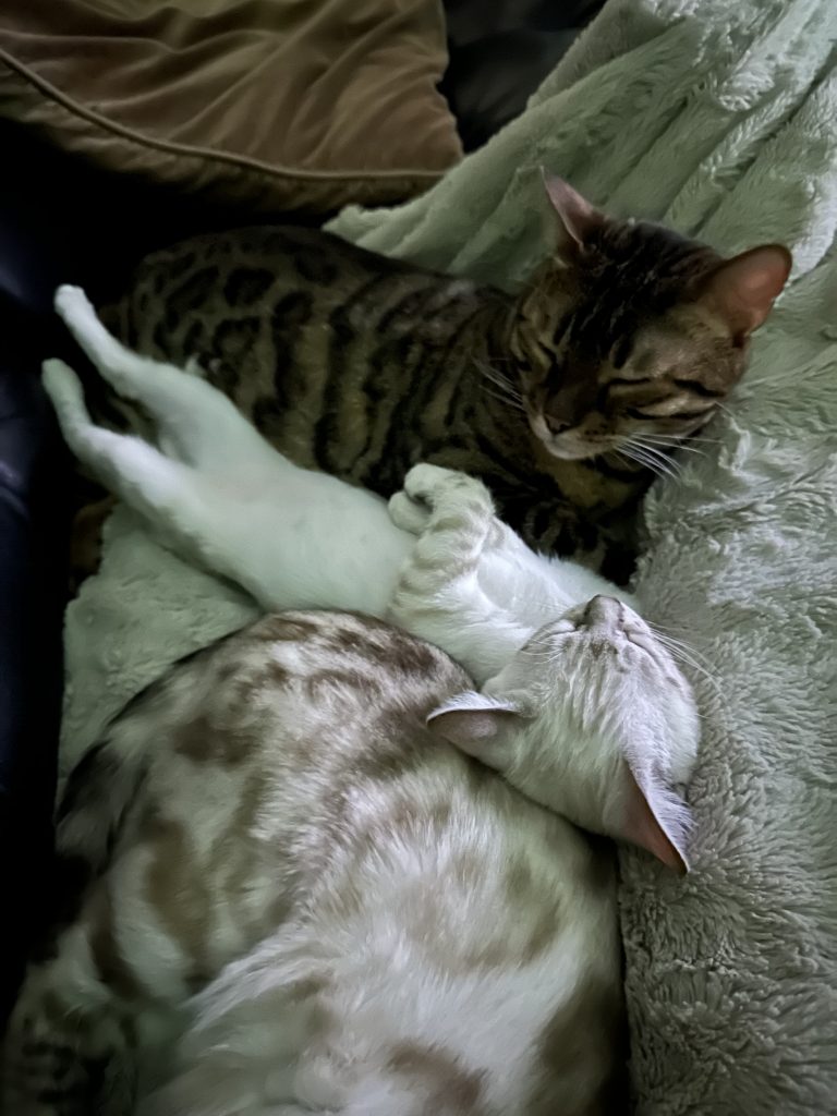 Suri ist eine Brown/Silver tabby spotted-Bengal; der Deckkater Chiko ist Brown/Black spotted tabby. Beide sind nicht nur wunderschön mit seidigem Fell, sondern haben auch einen wunderbaren Charakter. Bei den beiden war es Liebe auf den ersten Blick! Sie sind einfach zauberhaft. Beide Elterntiere hatten bereits erfolgreich Nachwuchs. Alle Kitten sind prächtig schön geworden und vor allem kerngesund!! Wir sind TICA – vereinsangehörig und selbstverständlich bekommen die Kitten Stammbäume.