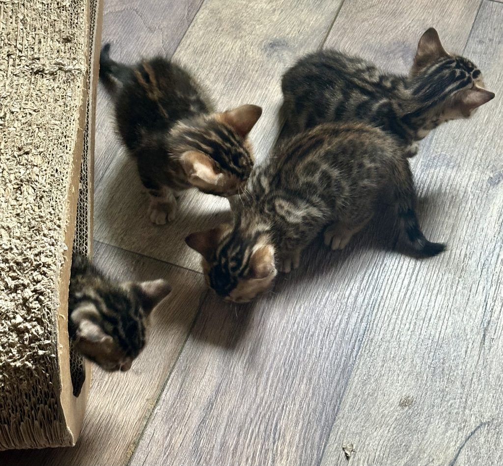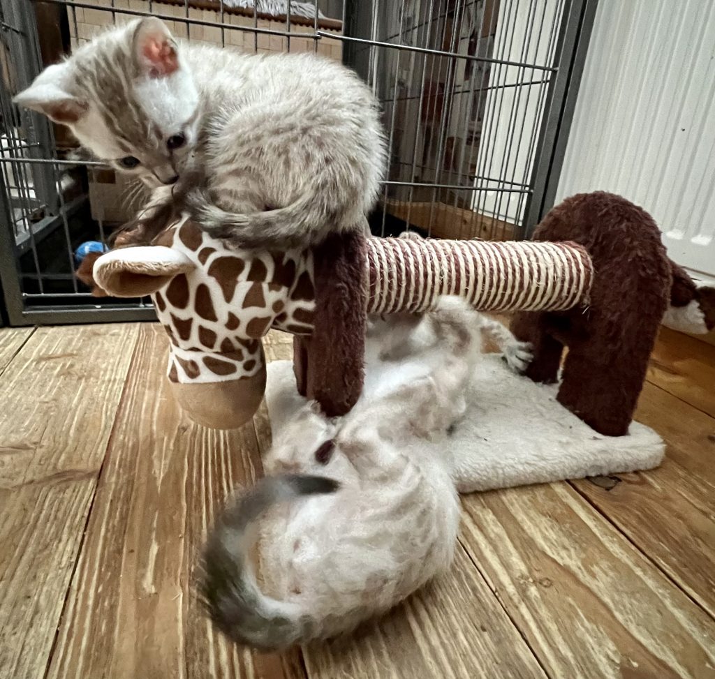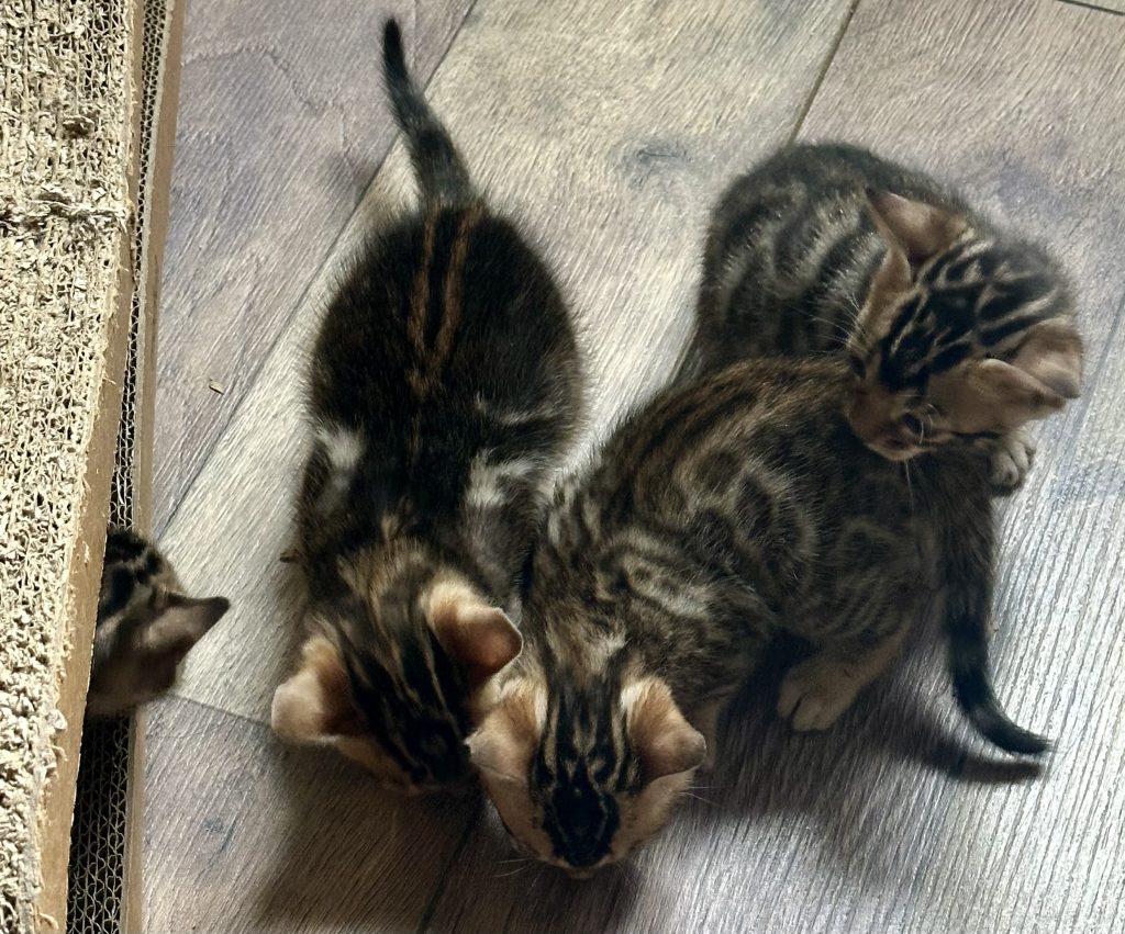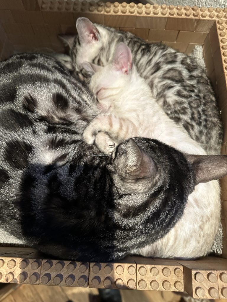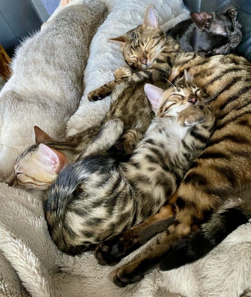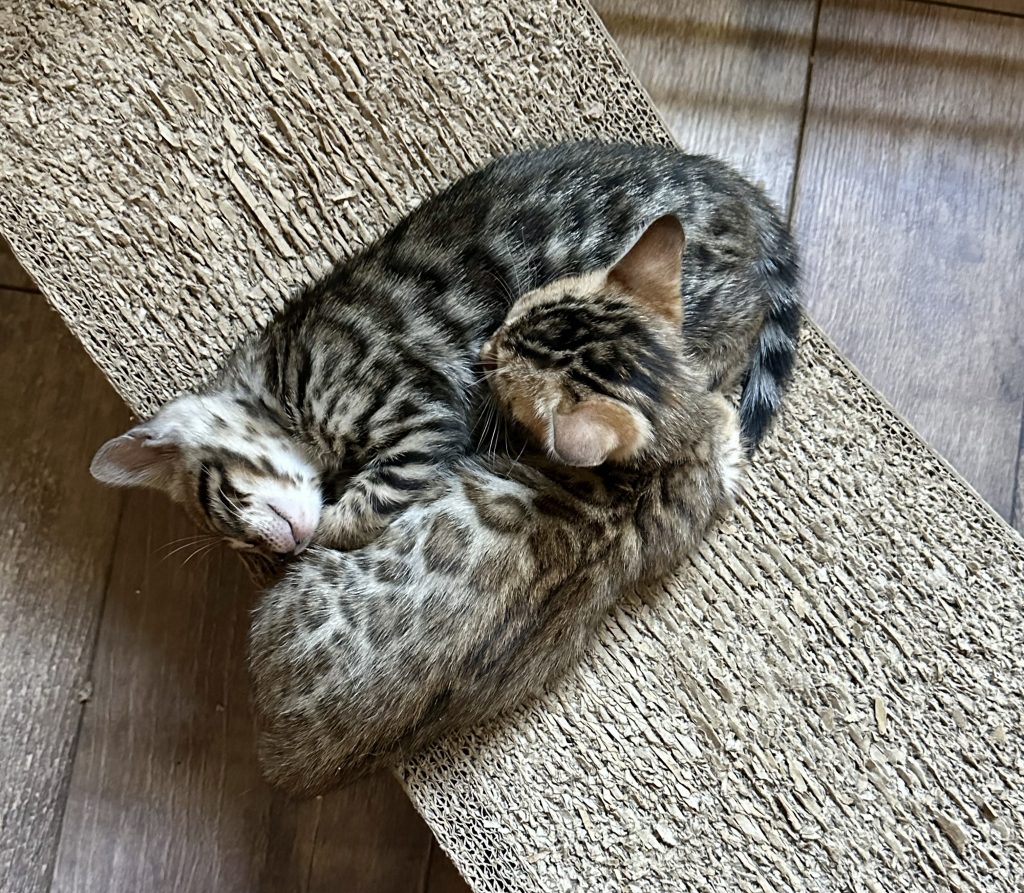 Suri ist eine Brown/Silver tabby spotted-Bengal; der Deckkater Chiko ist Brown/Black spotted tabby. Beide sind nicht nur wunderschön mit seidigem Fell, sondern haben auch einen wunderbaren Charakter. Bei den beiden war es Liebe auf den ersten Blick! Sie sind einfach zauberhaft. Beide Elterntiere hatten bereits erfolgreich Nachwuchs. Alle Kitten sind prächtig schön geworden und vor allem kerngesund!! Wir sind TICA – vereinsangehörig und selbstverständlich bekommen die Kitten Stammbäume.