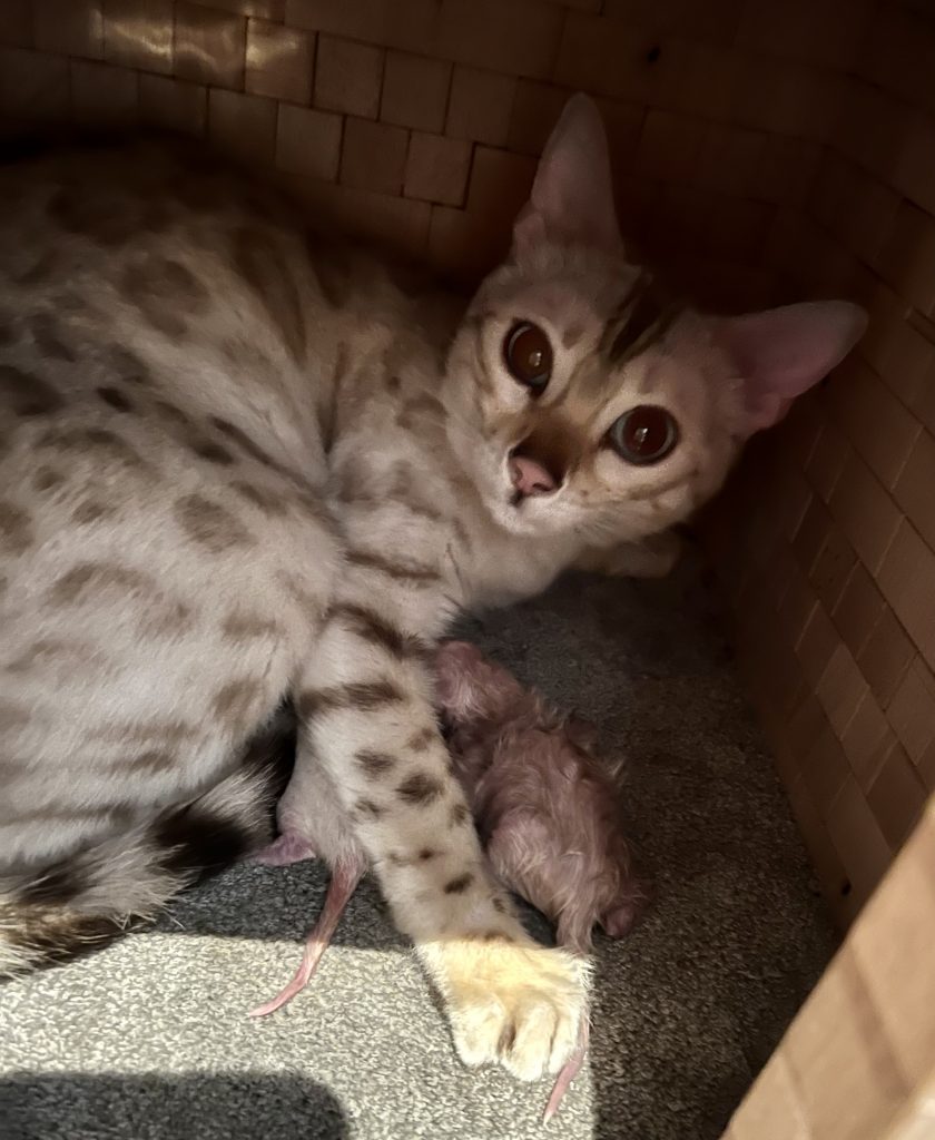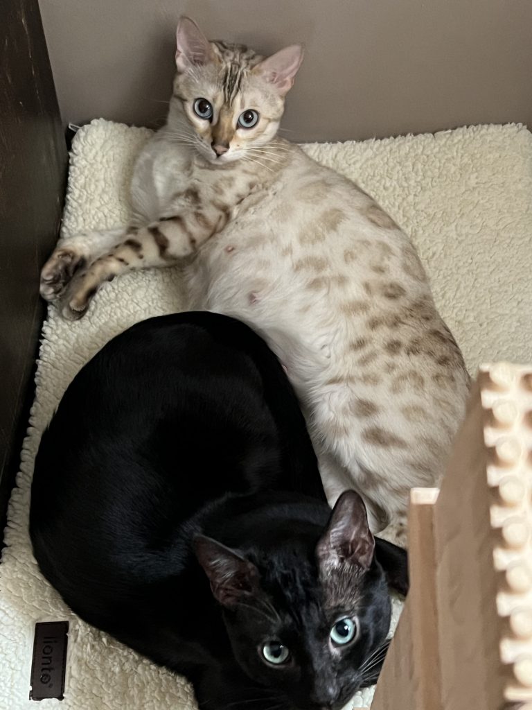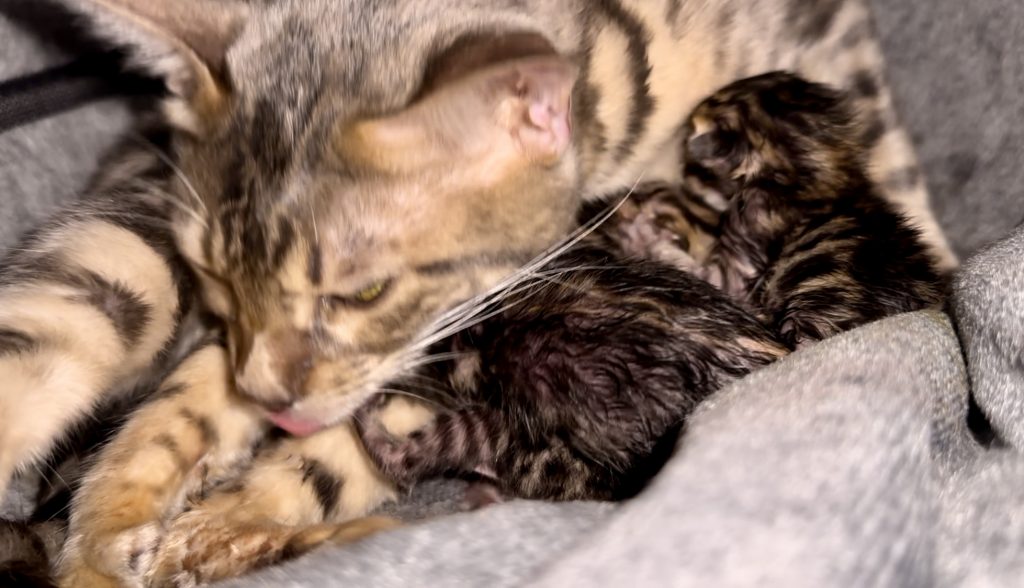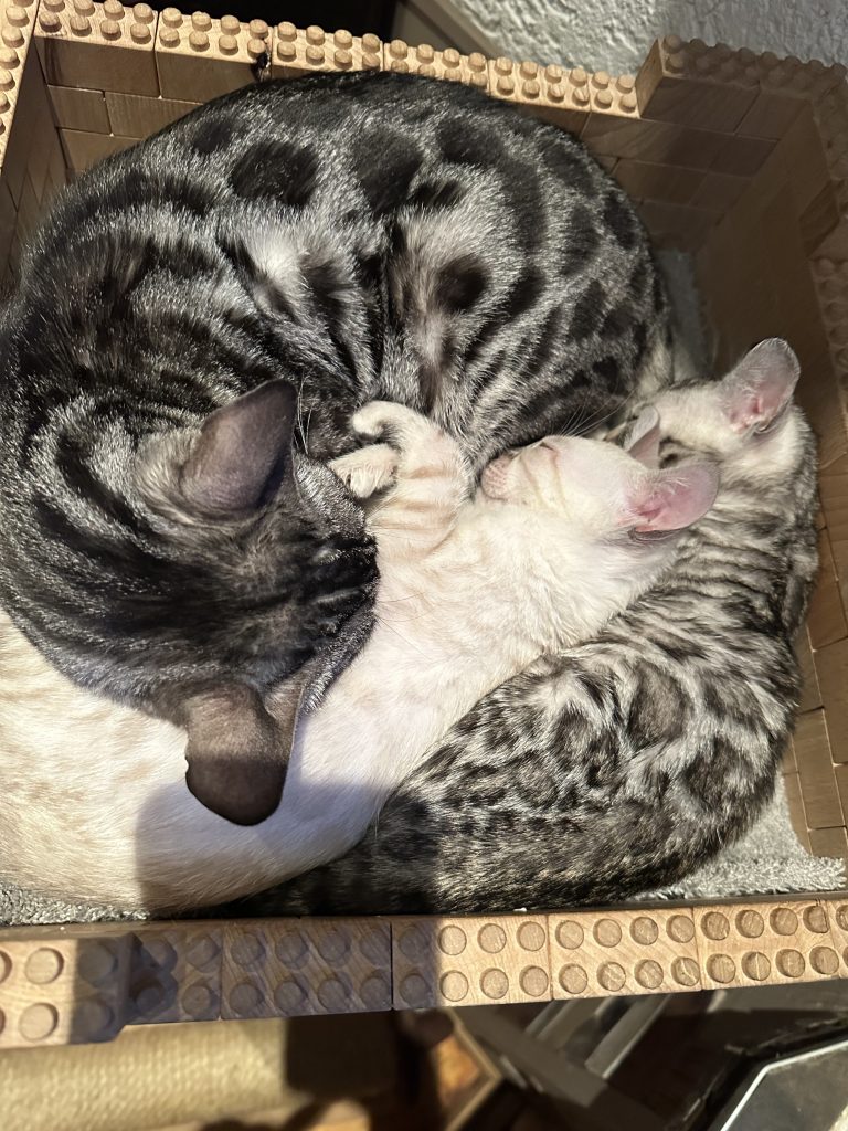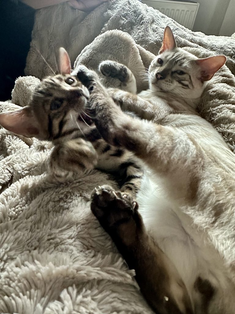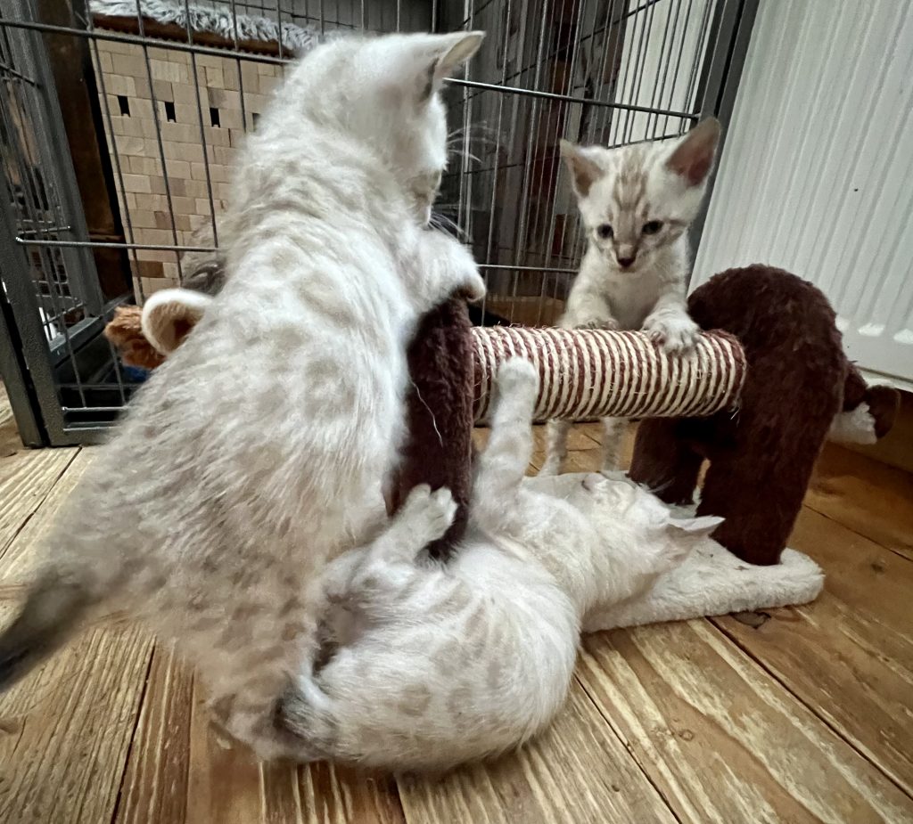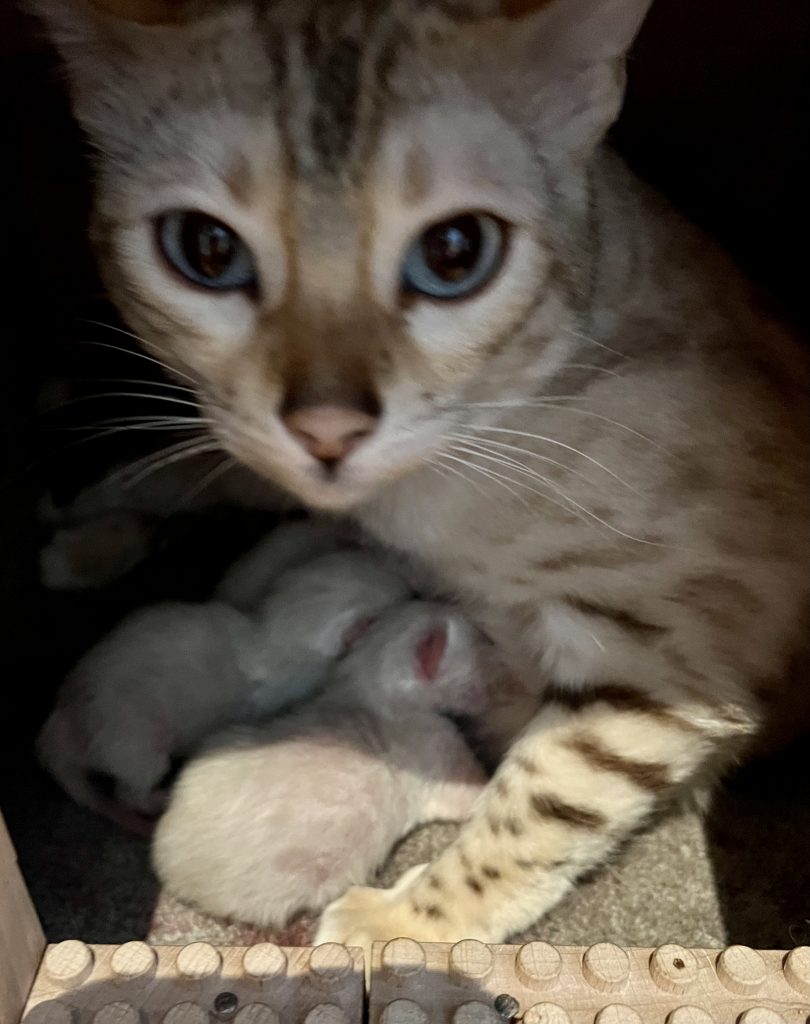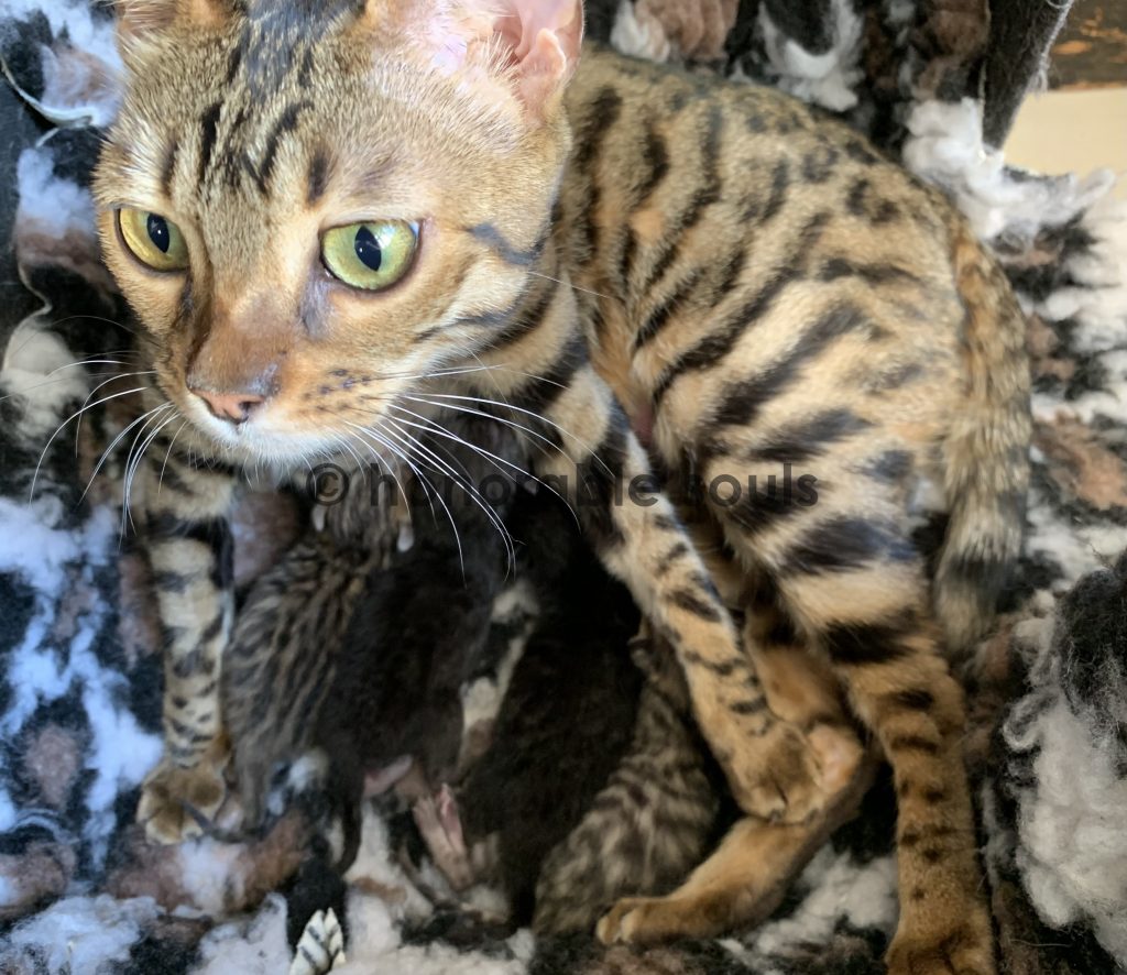 Suri ist eine Brown/Silver tabby spotted-Bengal; der Deckkater Chiko ist Brown/Black spotted tabby. Beide sind nicht nur wunderschön mit seidigem Fell, sondern haben auch einen wunderbaren Charakter. Bei den beiden war es Liebe auf den ersten Blick! Sie sind einfach zauberhaft. Beide Elterntiere hatten bereits erfolgreich Nachwuchs. Alle Kitten sind prächtig schön geworden und vor allem kerngesund!! Wir sind TICA – vereinsangehörig und selbstverständlich bekommen die Kitten Stammbäume.