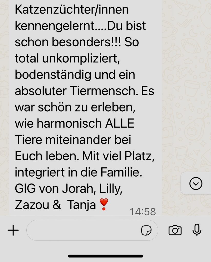Es liegt nicht in unserem Interesse unsere liebevoll aufgezogenen Babies schnellstmöglich zu verkaufen, sondern wir suchen ein tolles, bleibendes Zuhause für unsere Katzenkinder.